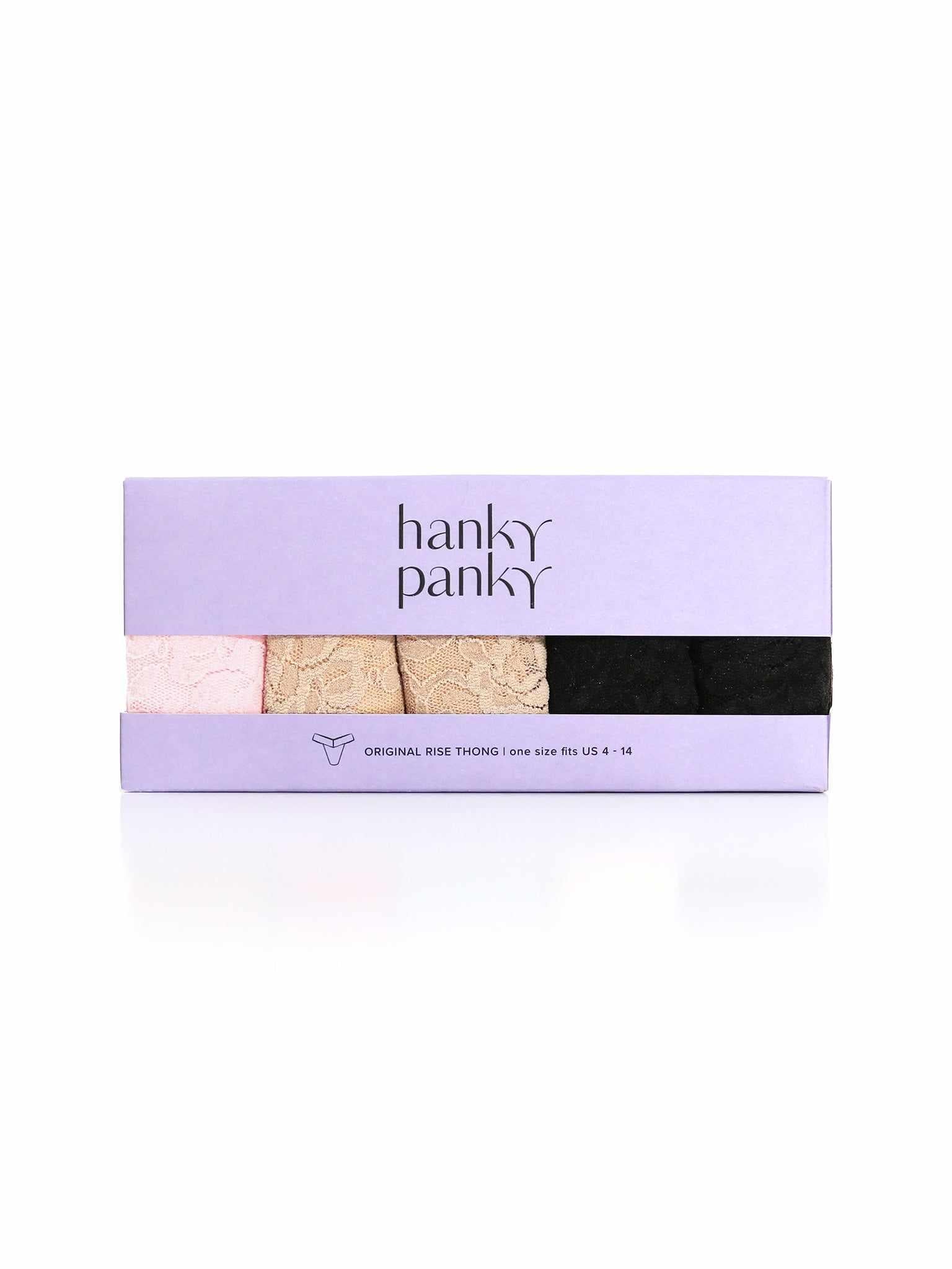 Welcome to our exclusive collection of our iconic Original Rise Thong, also known as the World's Most Comfortable Thong®! Crafted with great skill and care, our Original Rise Thong offers a perfect fit and unparalleled comfort that has made it a favorite among women worldwide for decades. Its One Size fit allows it to accomodate body fluctuations and fits a range of sizes from 4-14, with plus size Original Rise thongs also available.