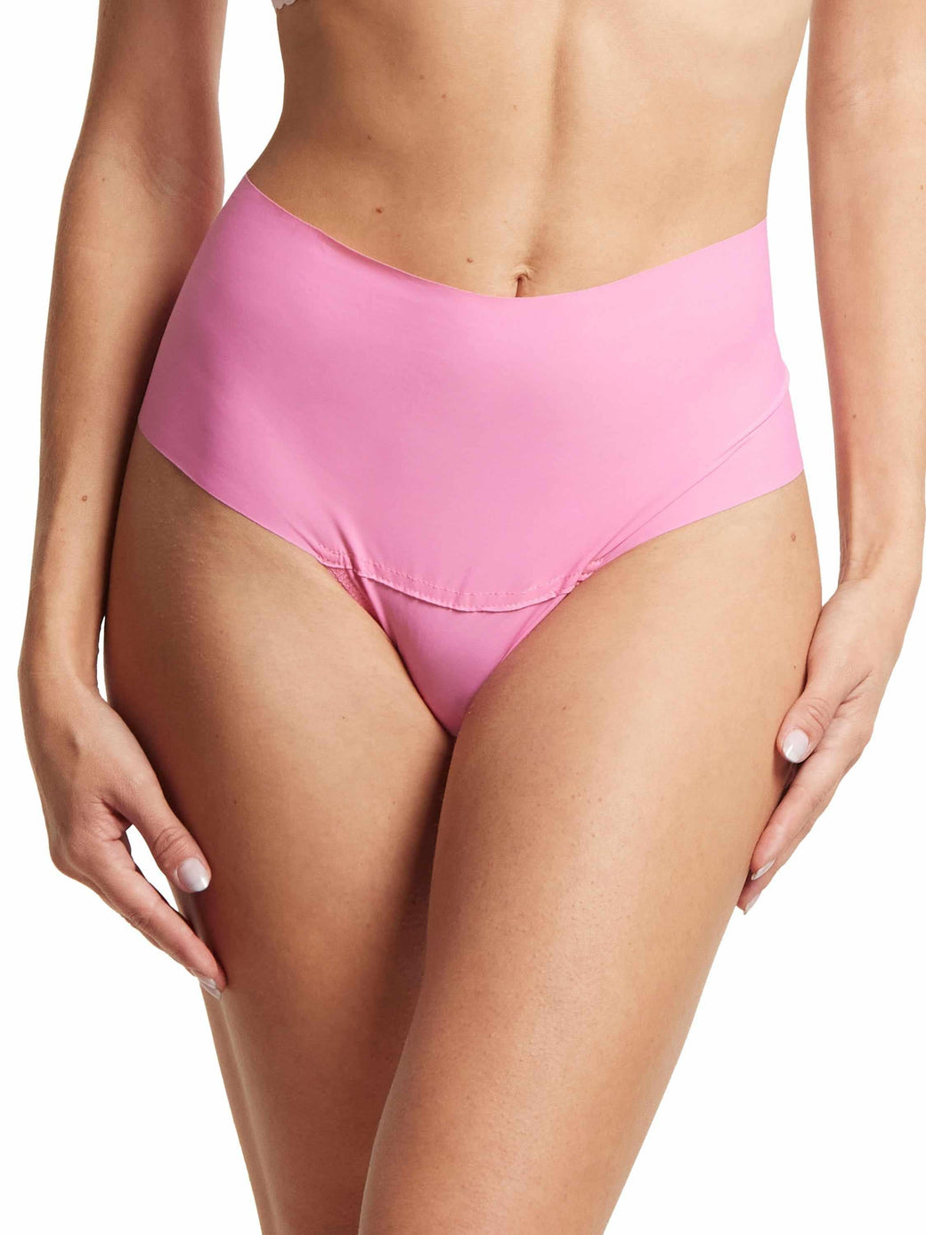 The Hi-Rise Thong sits high on the hips with a wide waistband.