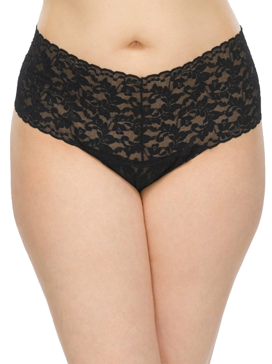Plus Size Retro Lace Thong Black