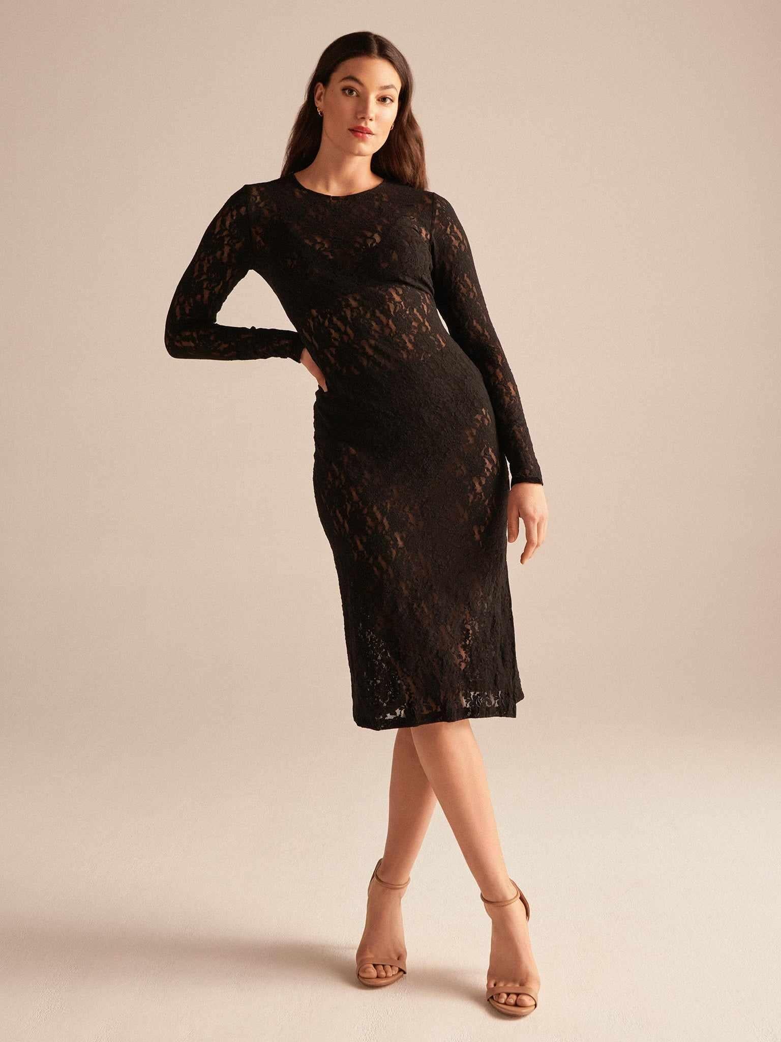 Signature Lace® Long Sleeve Midi Dress Black Sale