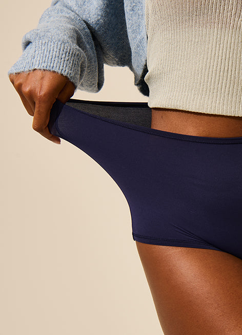 Our first full-coverage one size undies are here to cover your cheeks throughout all the seasons of your life–stretching with you, never digging in.